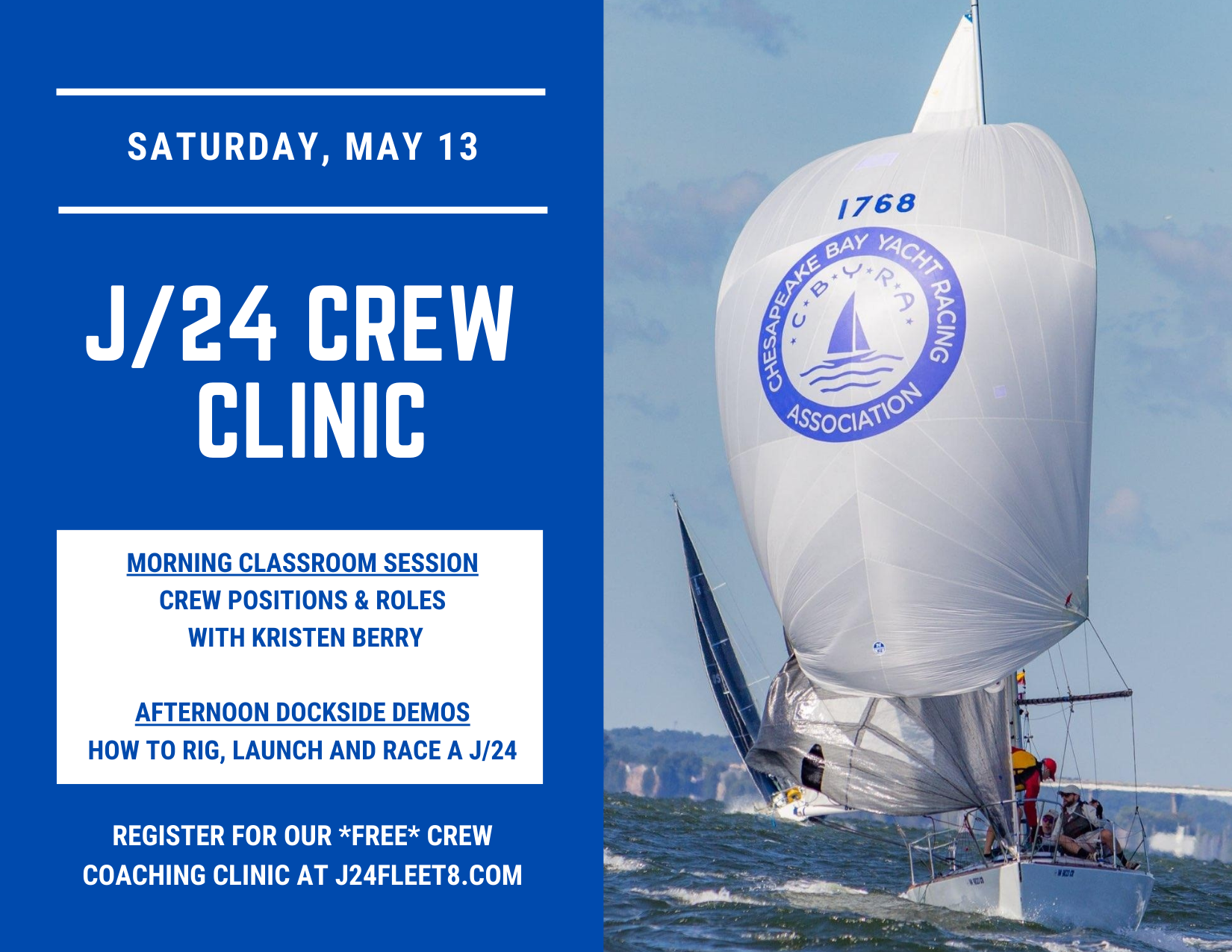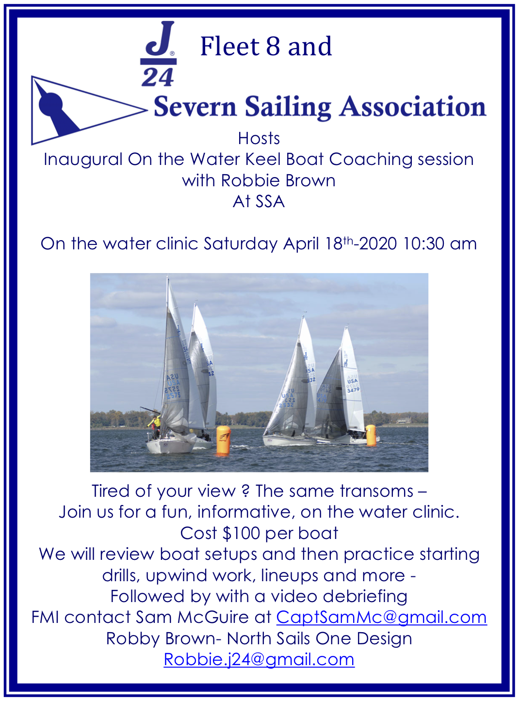 - J/24 On-The-Water clinic – April 11 with Robby Brown & other coaches
